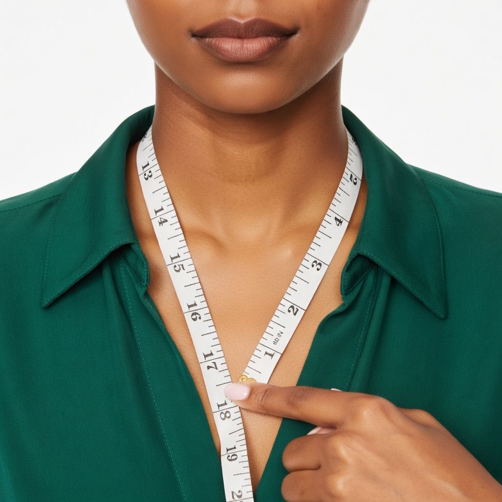 Posiziona il metro a nastro attorno al collo, come se fosse una collana, e regolalo in base alla lunghezza che desideri; quindi, scrivi la misura.