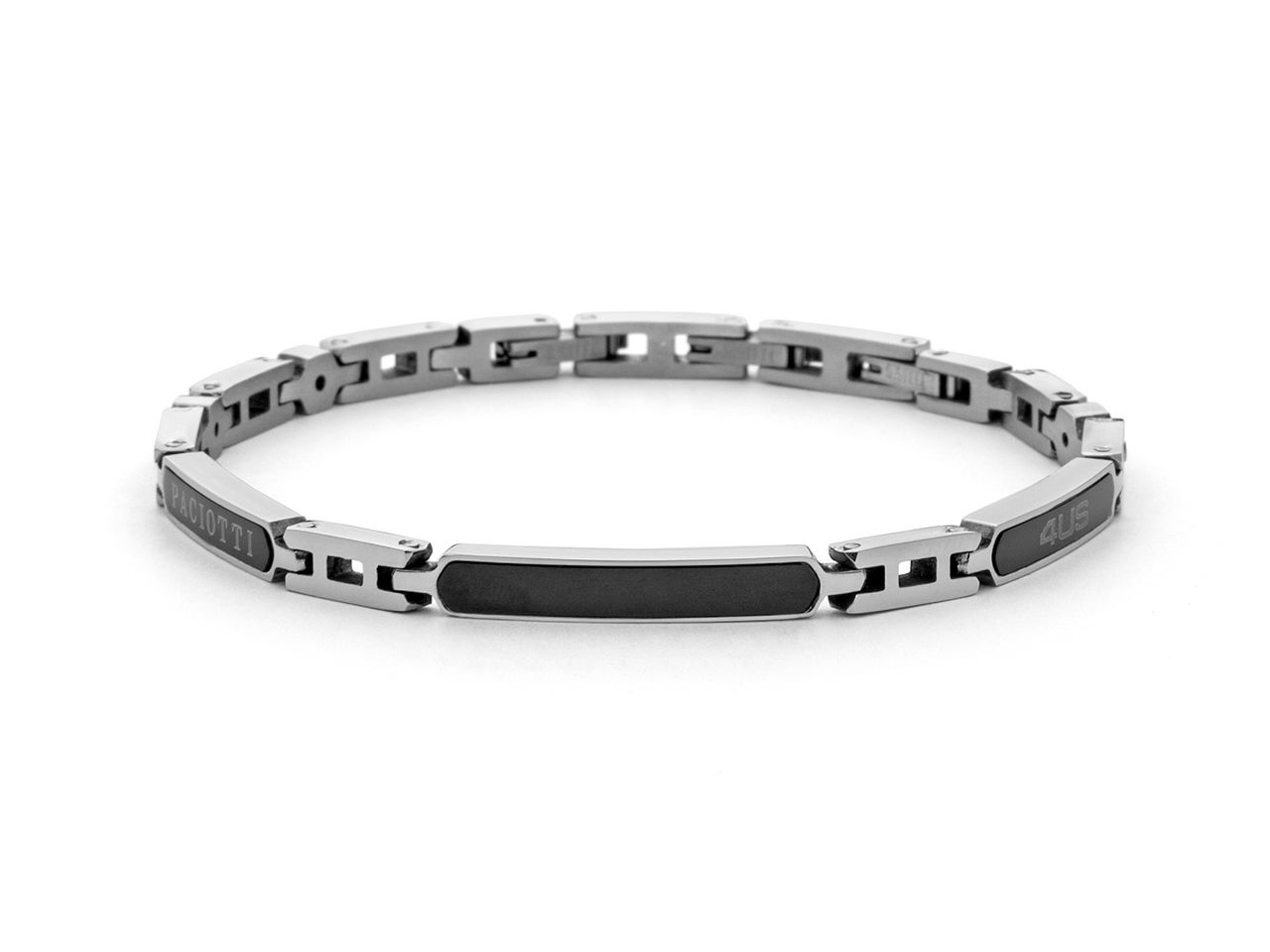 Bracciale da uomo firmato 4US Cesare Paciotti, realizzato in acciaio inossidabile con trattamento PVD nero e maglia a catena con placca centrale logata. Stile moderno e deciso, ideale per un look elegante e contemporaneo. Lunghezza regolabile da 19 a 21 cm, chiusura con moschettone logato. Con shopper originale e garanzia ufficiale 2 anni.