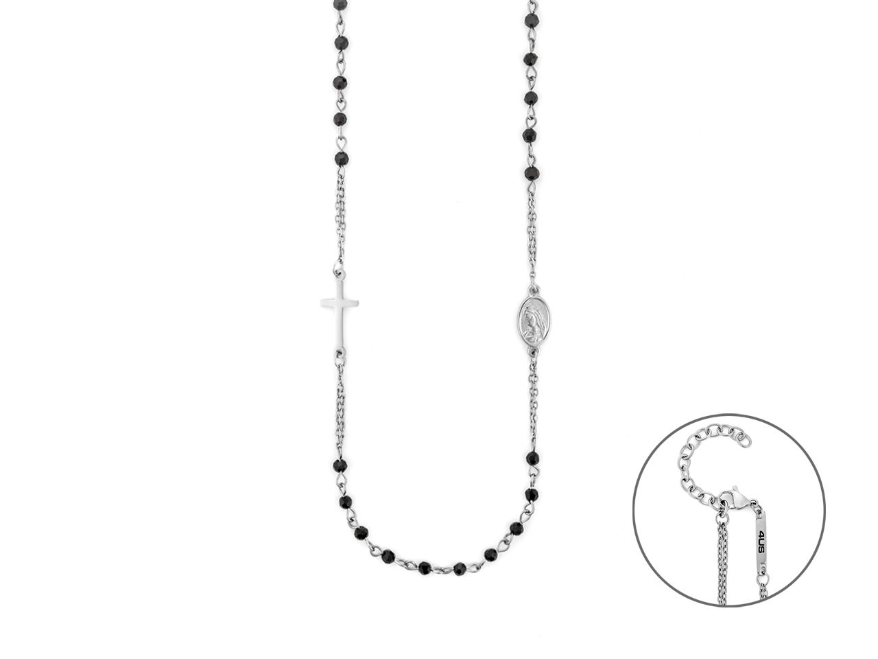 Collana da uomo 4US Cesare Paciotti realizzata in acciaio inossidabile con pendente in pietra nera e piccolo logo Paciotti inciso. Un accessorio elegante e moderno, perfetto per aggiungere un tocco di carattere a ogni look. Lunghezza 50 cm, chiusura con moschettone logato.